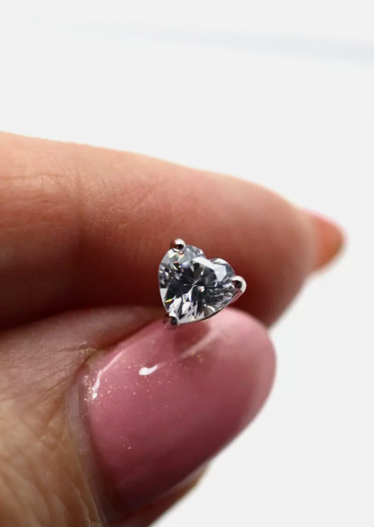 Sterling Silver 925 Cubic Zirconia 6mm Heart Set Cut Studs Earrings