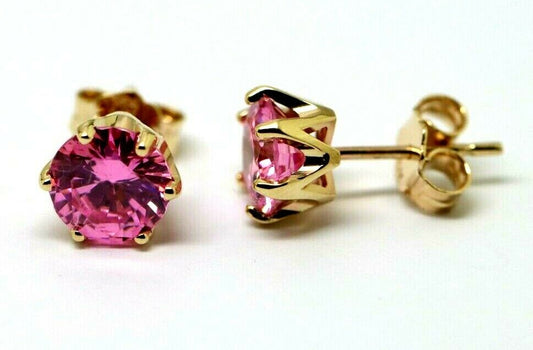 Genuine 9ct Yellow Gold Claw-set Round Pink Sapphire CZ 7mm Stud Earrings