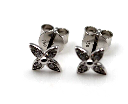 Genuine New 18ct 750 White Gold Flora Diamond Stud Earrings -Free Express Post