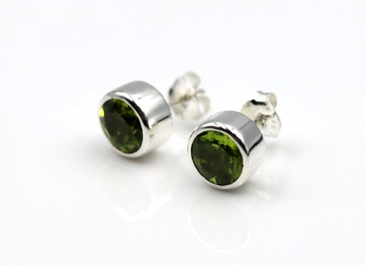 Genuine Sterling Silver 925 Solitaire Peridot Stud Earrings