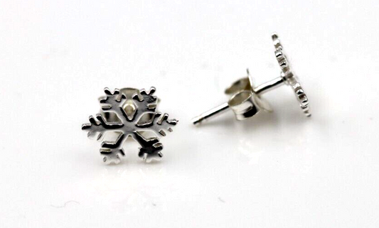 Genuine Sterling Silver 925 Small Christmas Snowflake Stud Earrings