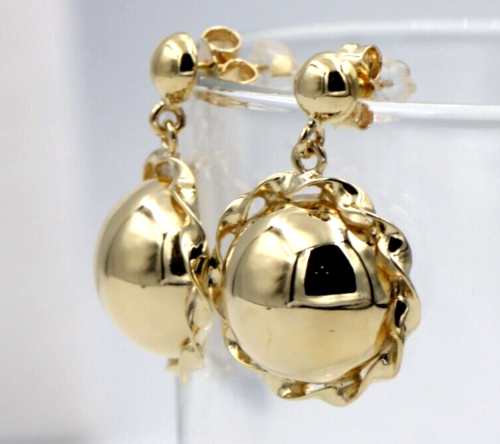9ct Yellow, Rose or White Gold Twisted 16mm Half Ball Stud Ball Earrings