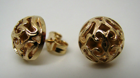 Genuine 9ct Solid Yellow, Rose or White Gold Half Ball 12mm Stud Filigree Earrings
