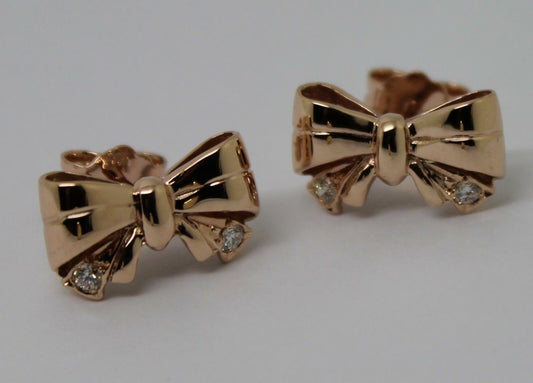 Genuine 9ct Yellow, Rose or White Gold Butterfly Stud Earrings Set With Four Genuine Diamonds