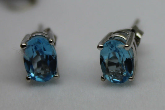 Genuine 9ct 9K White Gold Topaz Oval Stud Earrings