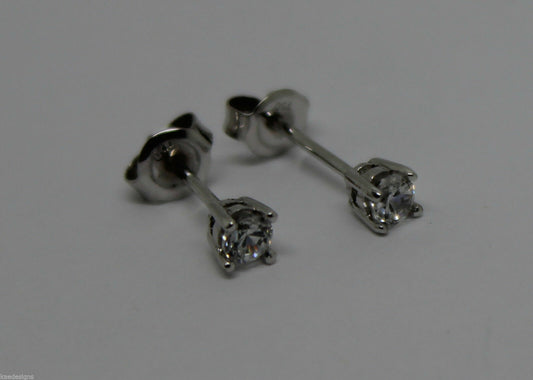 Kaedesigns Genuine New 9ct White Gold Claw-set Round 3mm C Z Stone Stud Earrings