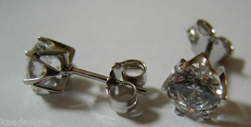 KAEDESIGNS, NEW GENUINE New 9ct White Gold Claw-set Round 7mm Stud Earrings