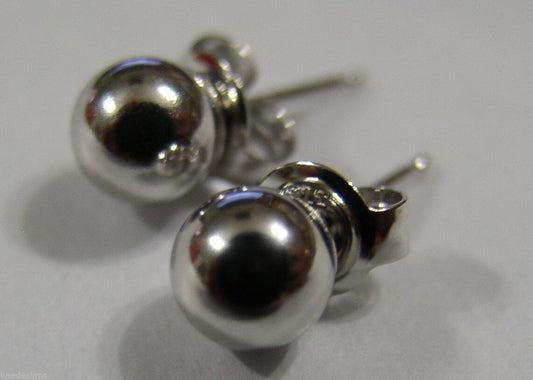 Genuine 14ct White Gold 5mm Stud Ball Earrings With Butterfly Backs