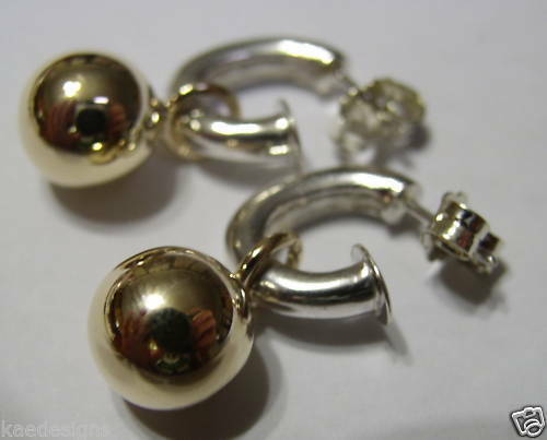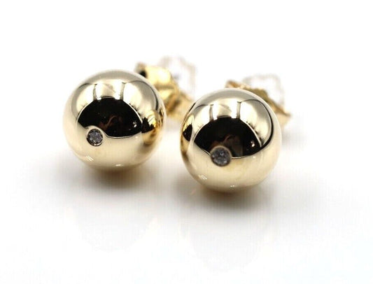 Genuine 9ct 9kt Yellow Gold & Sterling Silver Ball Stud Earrings