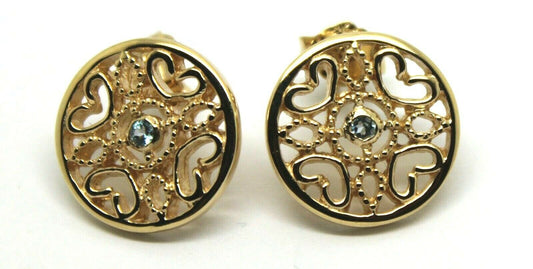 Genuine 9ct Yellow, Rose or White Gold Topaz Heart Filigree Stud Earrings