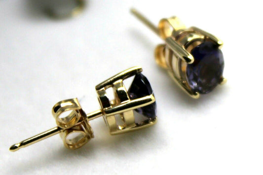 Genuine 9ct 9K 375 Yellow Gold Amethyst Oval Stud Earrings