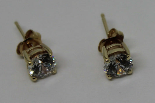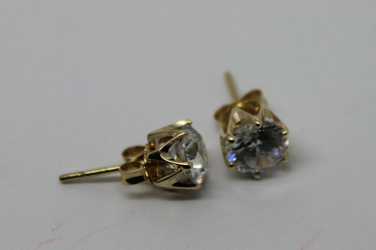 Genuine New 9ct Yellow Gold Claw-Set Round 7mm Stud Earrings