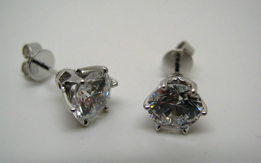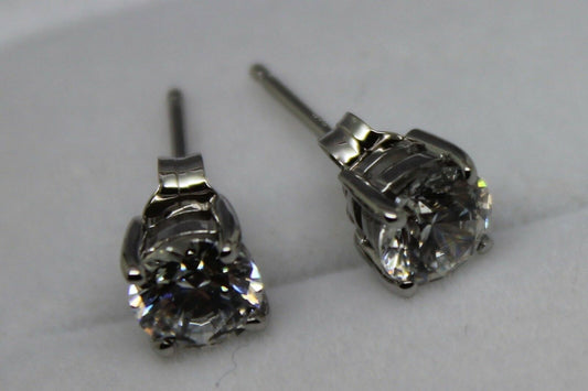 GENUINE New 9ct White Gold Claw-set Round 1ct Cubic Stud Earrings