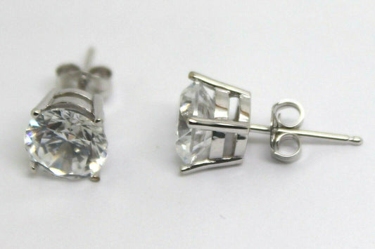 Genuine New 9ct White Gold Claw-Set Round 7mm Stud Earrings