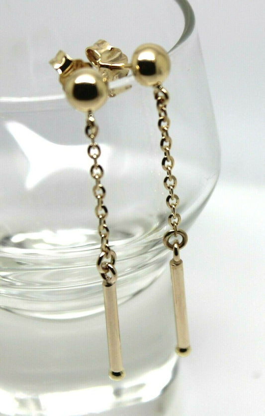 Genuine 9ct Yellow, Rose or White Gold 6mm Half Ball Stud Chain Long Earrings