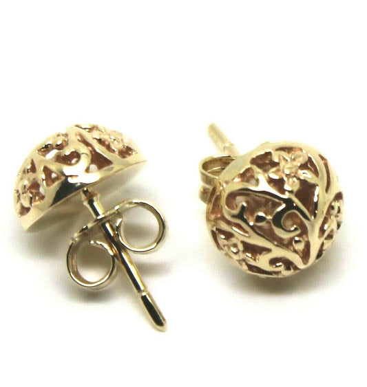 Genuine New 9k 9ct Yellow, Rose or White Gold Half Ball 10mm Stud Filigree Flower Earrings