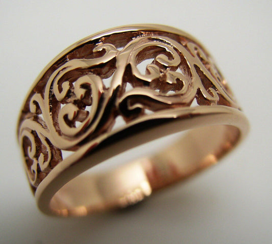 Genuine 9ct Gold 375 Full Solid Yellow, Rose or White Gold Filigree Swirl Ring - Choose your size from N to S