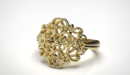 Kaedesigns New Size Q1/2 9ct Full Yellow, Rose or White Gold Filigree Flower Swirl Ring