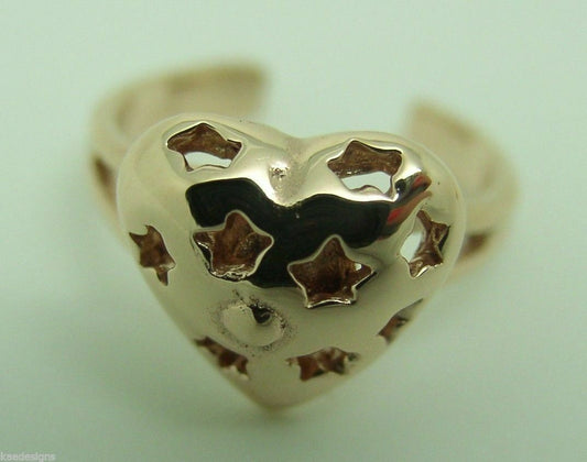 Genuine 9ct 375 Yellow or Rose or White Gold Star Heart Toe Ring 232