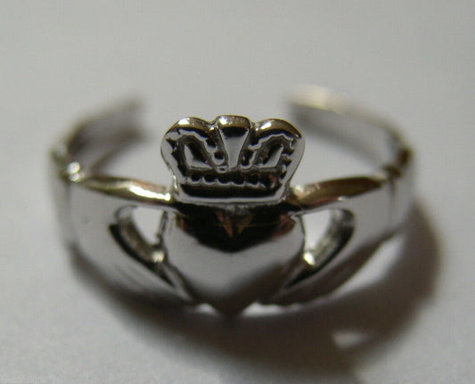 Large Solid 9ct 9k White Gold Irish Claddagh Toe Ring *Free Express Post In Oz*
