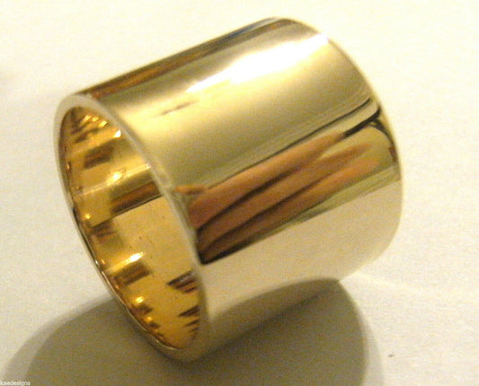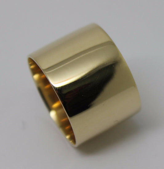Size M, Genuine Solid 9t Yellow, Rose or White Gold / 375 Full 16mm Extra Wide Band Ring