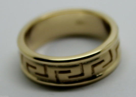 Kaedesigns, Genuine 375 9ct Yellow Solid Polished or Matt Gold Large Greek Key Ring In Your Size