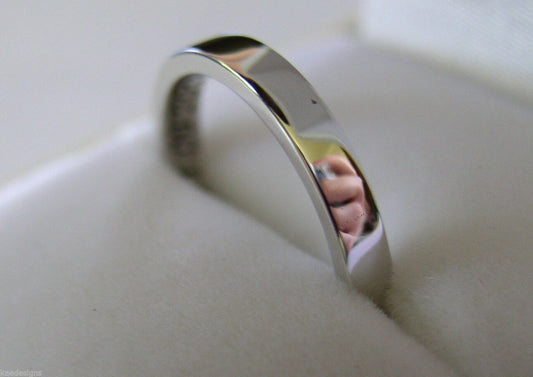 Size O New Genuine 18ct Hallmarked 750 White Gold Full Solid 3mm Flat Wedding Band