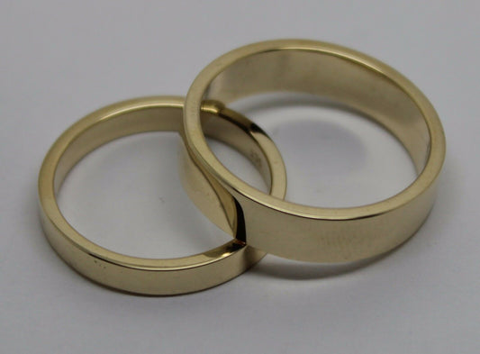 Genuine His & Hers Set Solid 9ct 9K Yellow Gold Flat Plain Wedding Bands Couple Rings