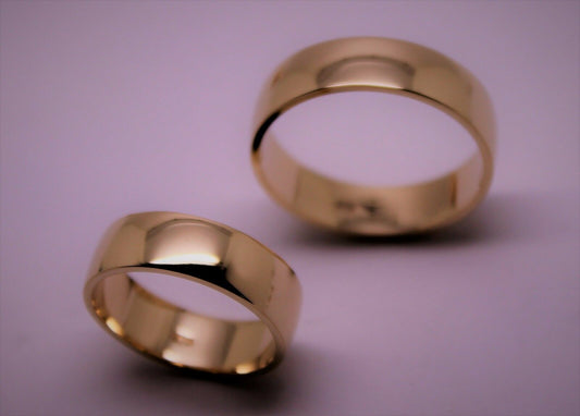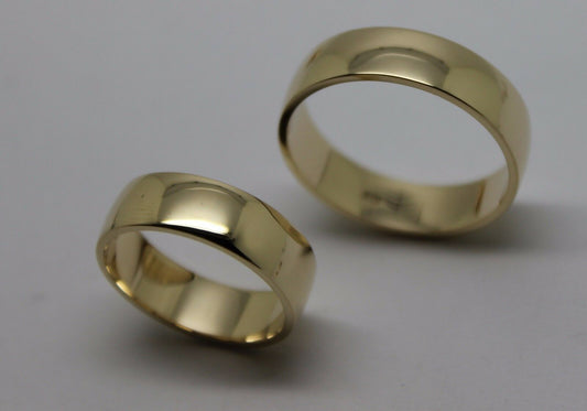 His & Hers Genuine 2 X Full Solid 9Ct Yellow Gold 6mm Wide Wedding Couple Bands Rings