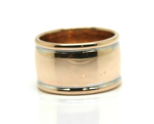Size P 9ct 9kt Full Solid Rose & White Gold Ridged Dome Ring 12mm Wide