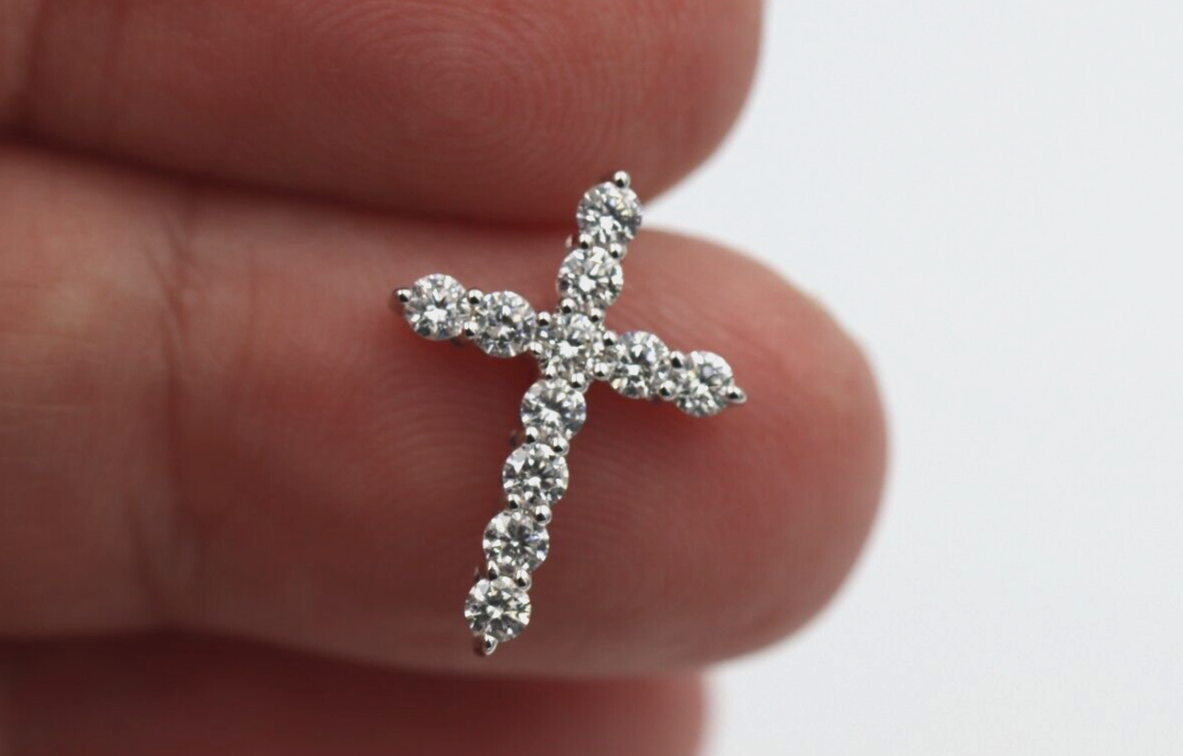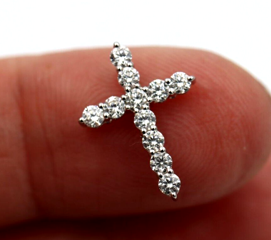 0.416cts New Genuine 18ct 750 White Gold Diamond Cross Pendant
