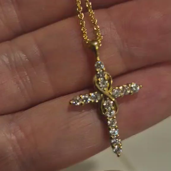 Genuine 18ct 18k 750 Yellow Gold Round Lab Grown Diamond Infinity Cross Pendant & 18ct Cable Chain 45cm