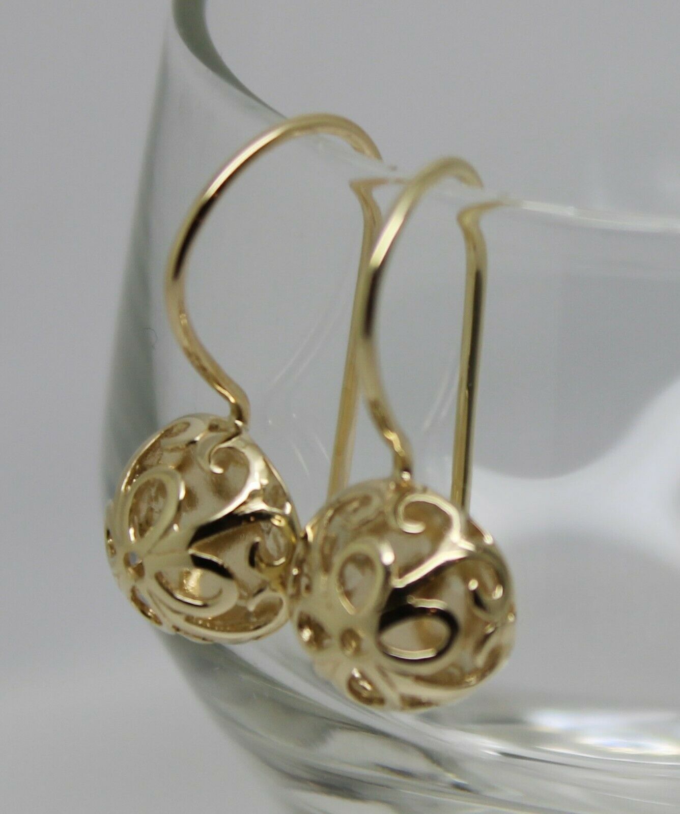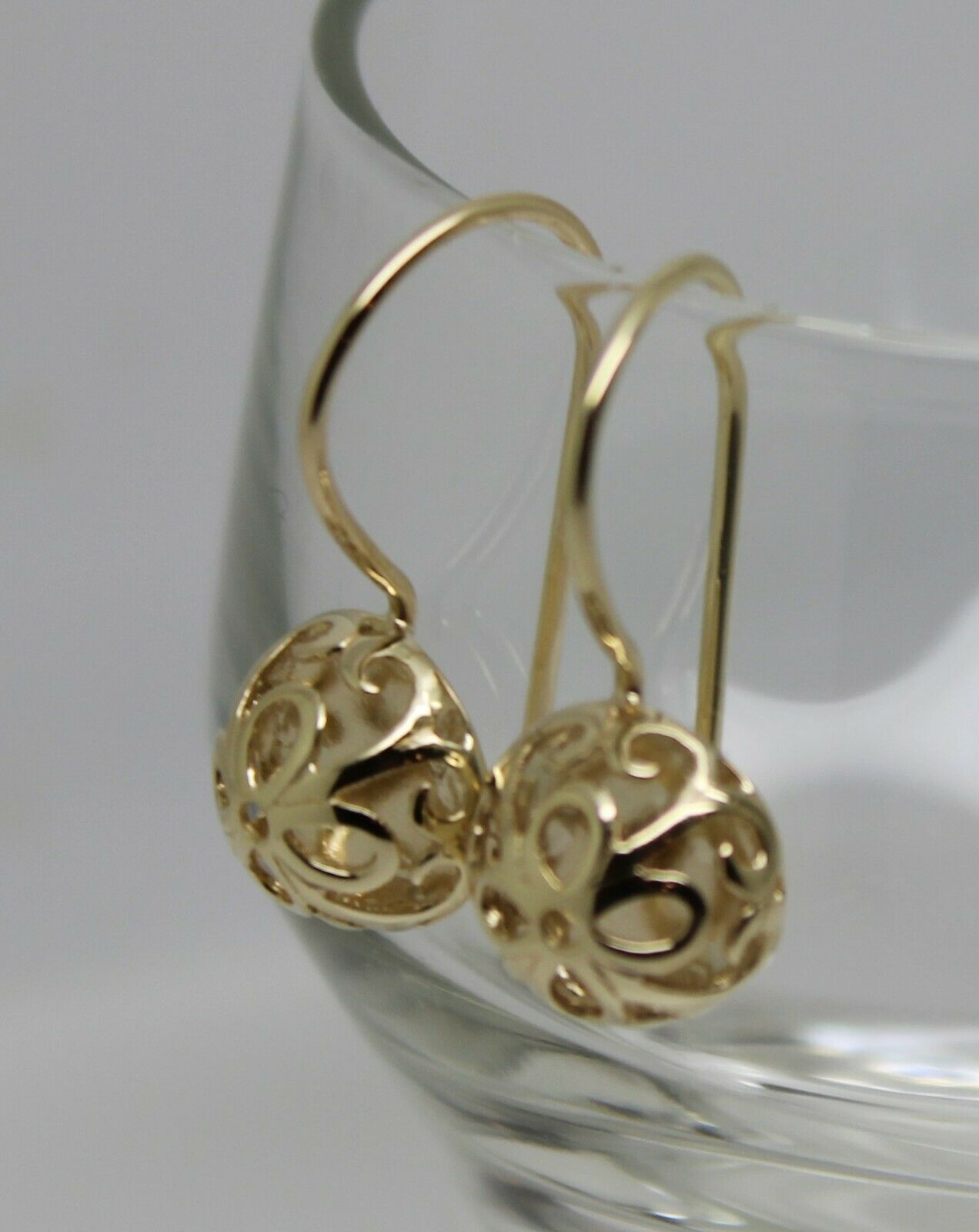 Kaedesigns New 9ct Yellow, Rose or White Gold 10mm Half Ball Hook Filigree Earrings
