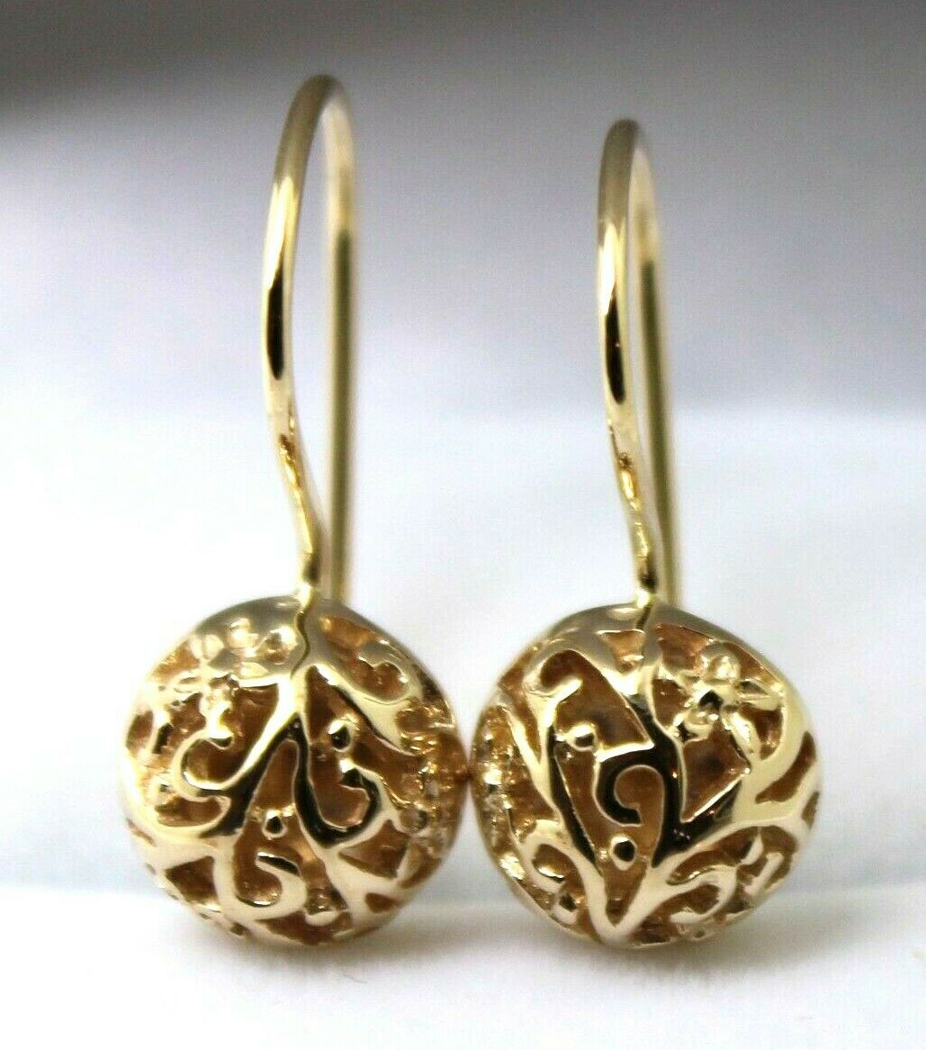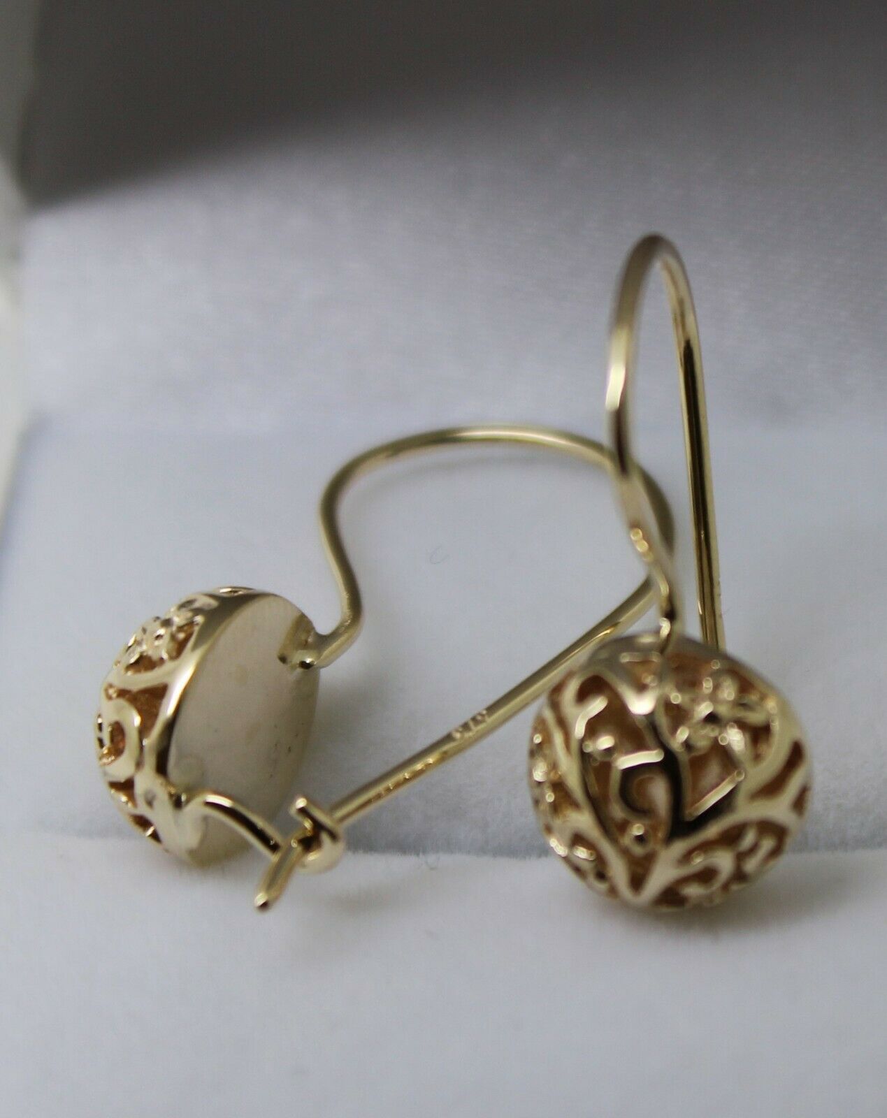 Genuine 9ct Yellow, Rose or White gold 10mm half ball filigree earrings