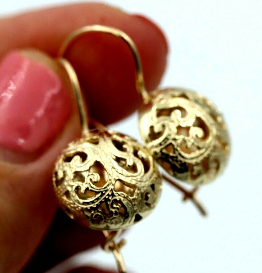 Kaedesigns New 9ct Yellow, Rose & White Gold 14mm Half Ball Filigree Earrings