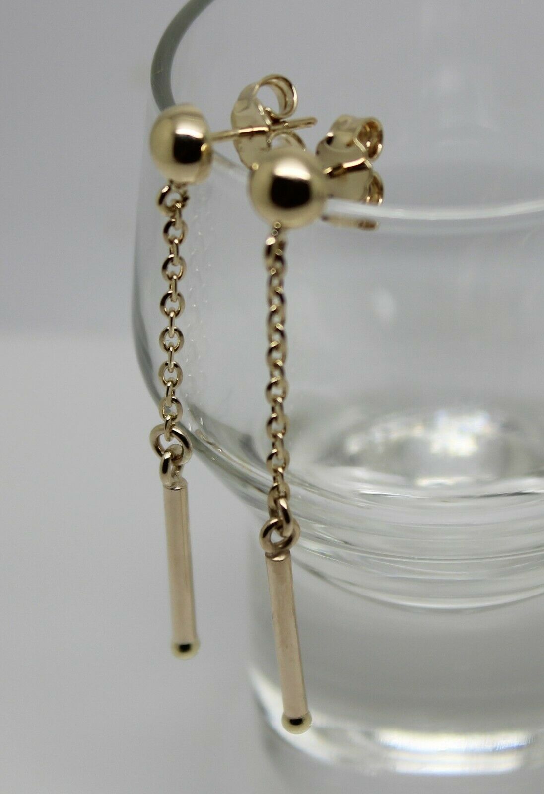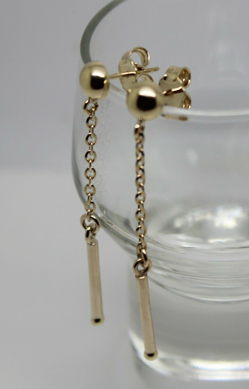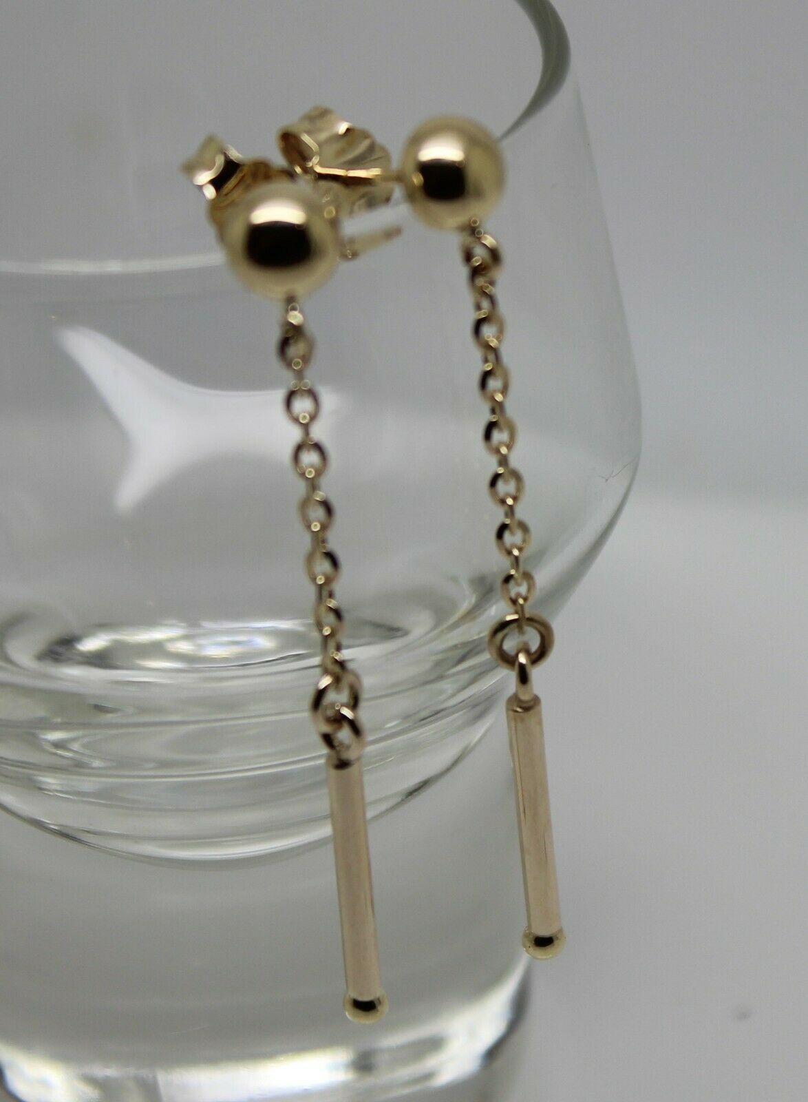 Genuine 9ct Yellow, Rose or White Gold 6mm Half Ball Stud Chain Long Earrings