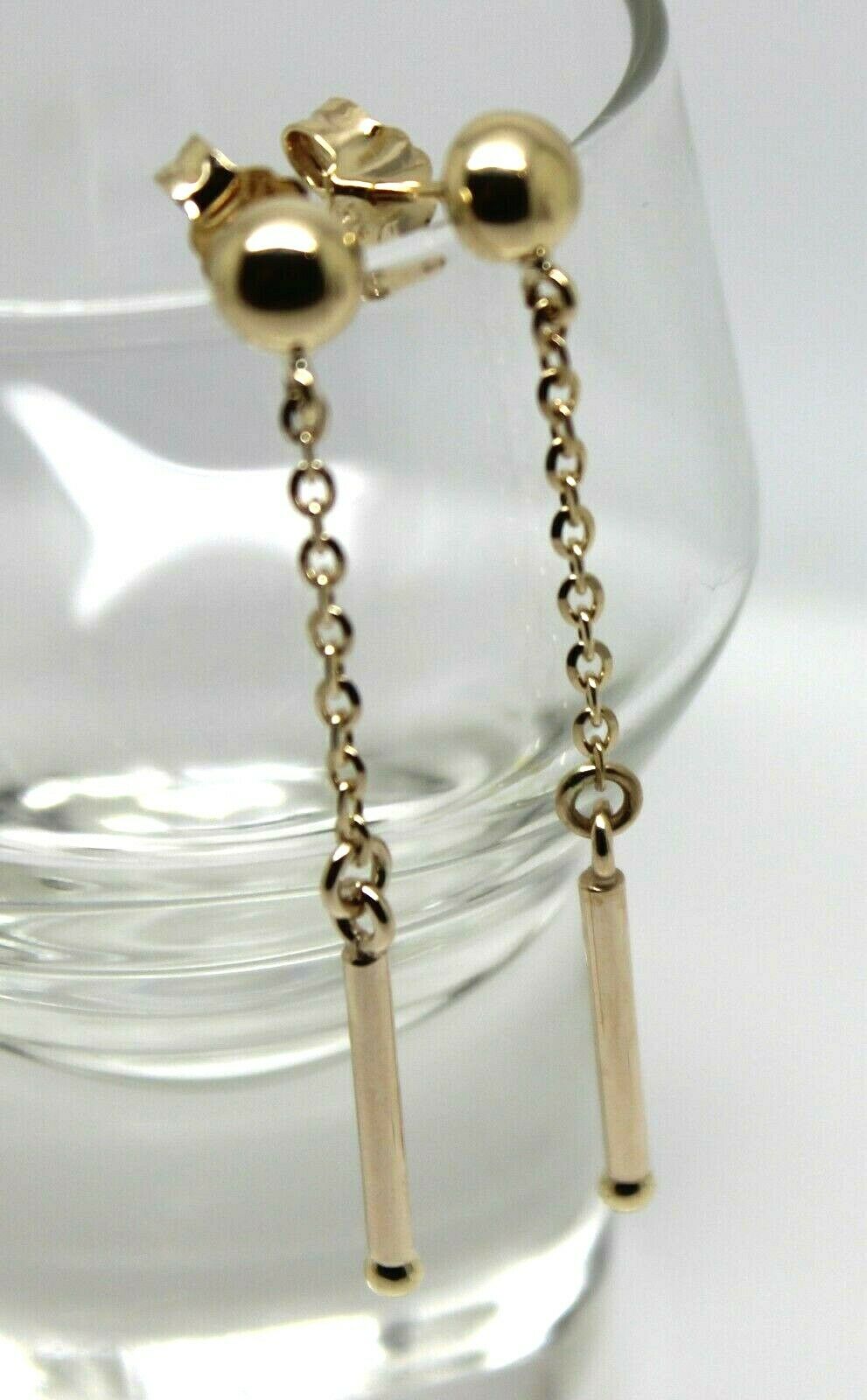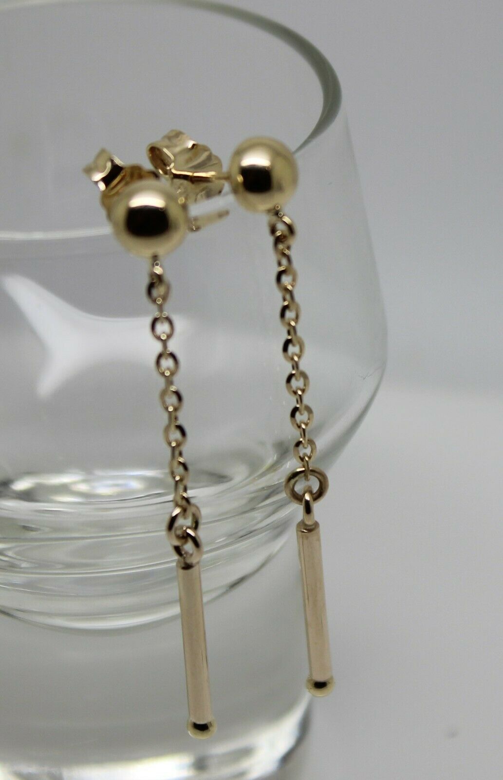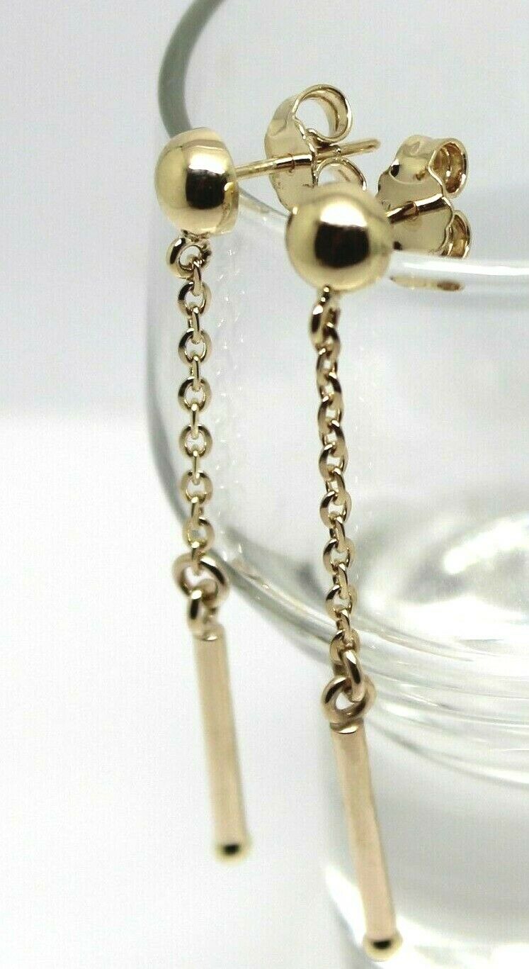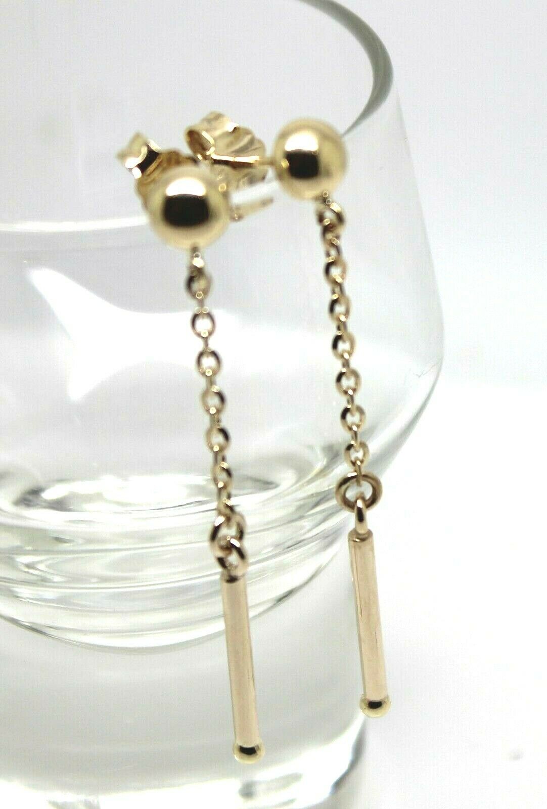 Genuine 9ct Yellow, Rose or White Gold 6mm Half Ball Stud Chain Long Earrings