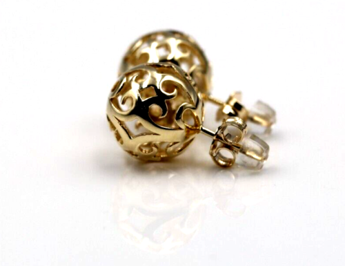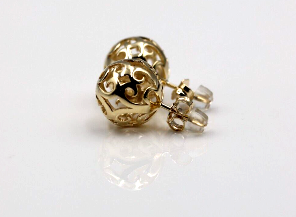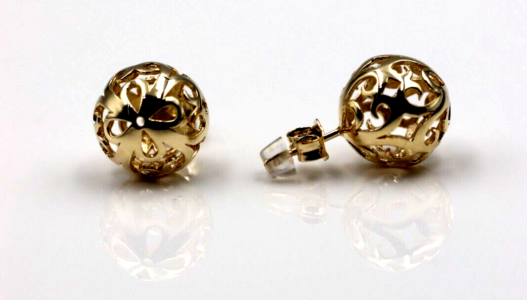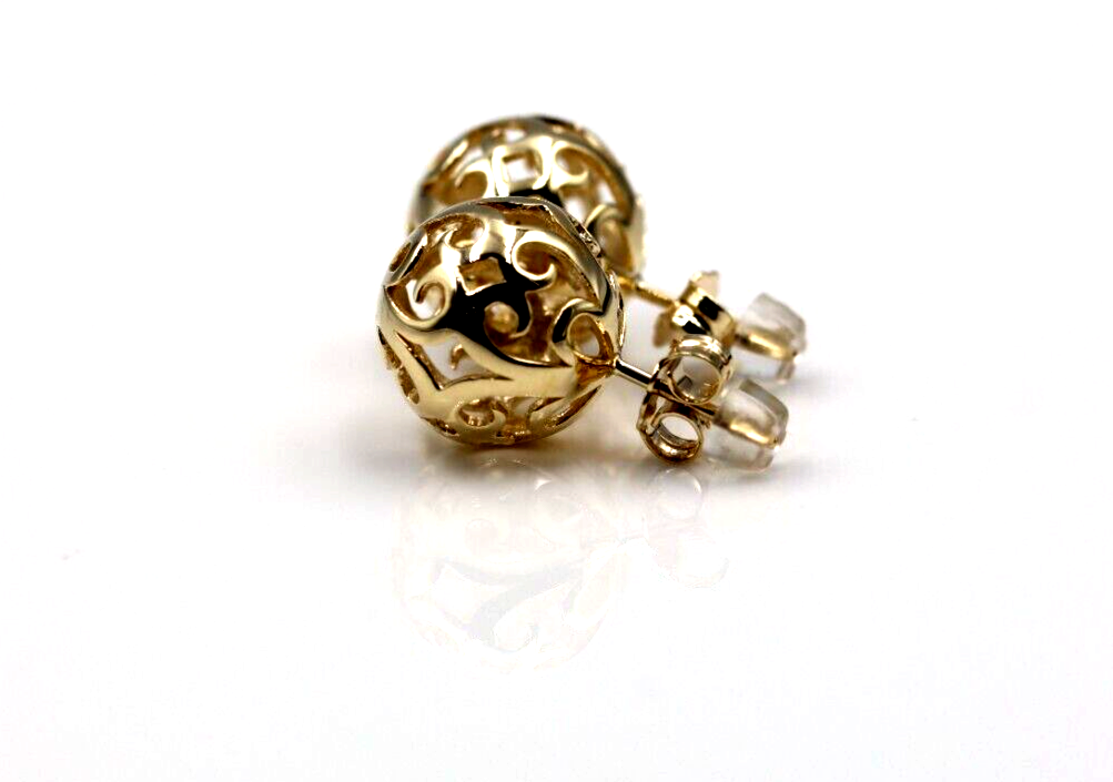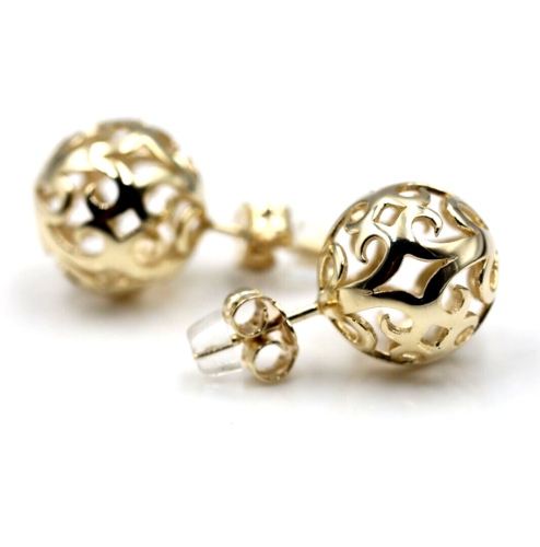 Genuine 9ct Solid Yellow, Rose or White Gold 10mm, 12mm or 14mm Filigree Stud Ball Earrings