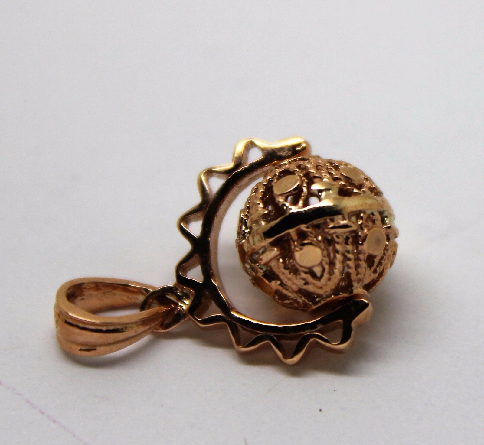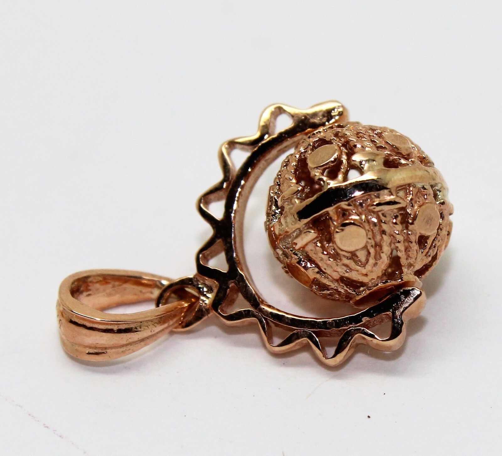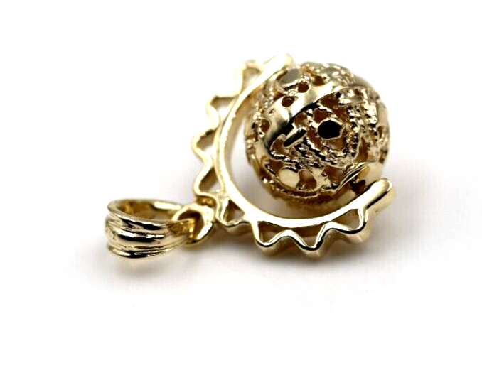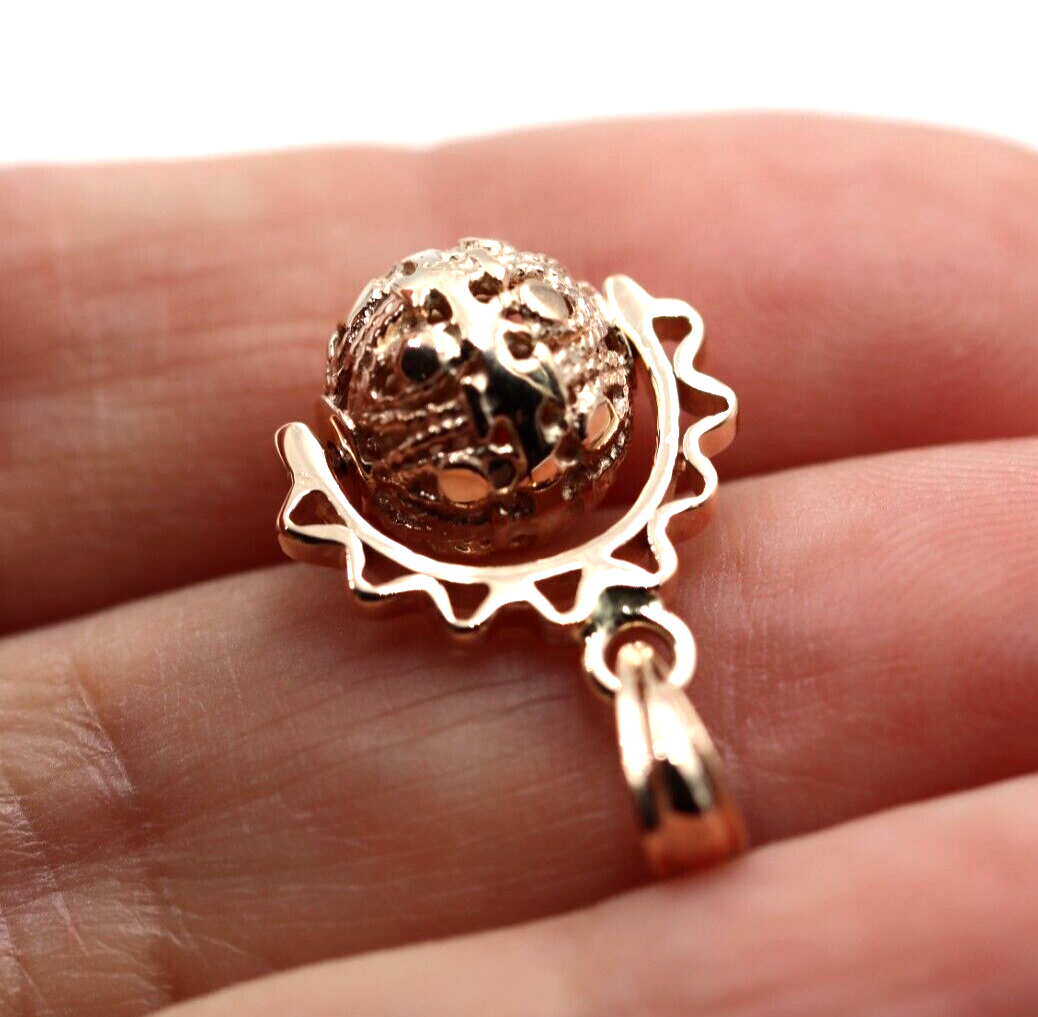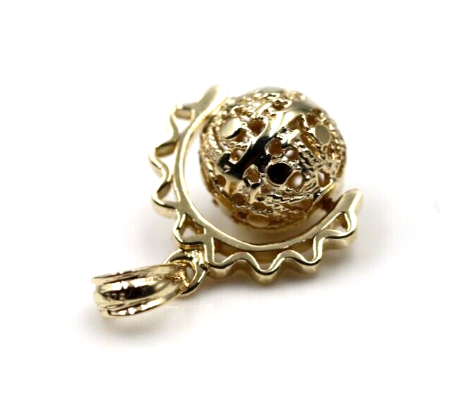Genuine 9k 9ct Solid Yellow, Rose Or White Gold Filigree 10mm Ball Spinner Pendant