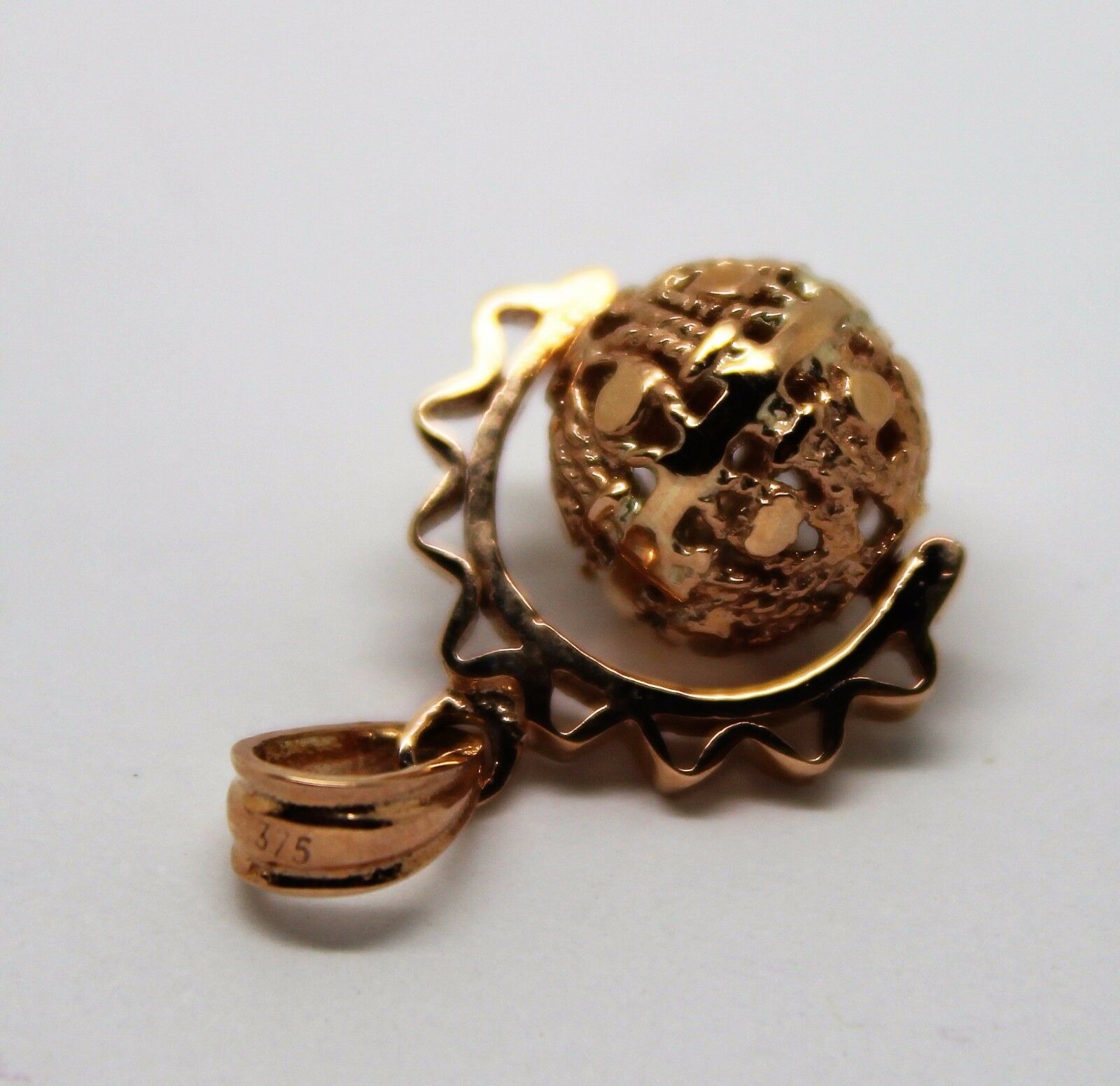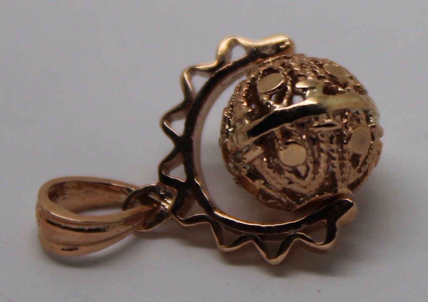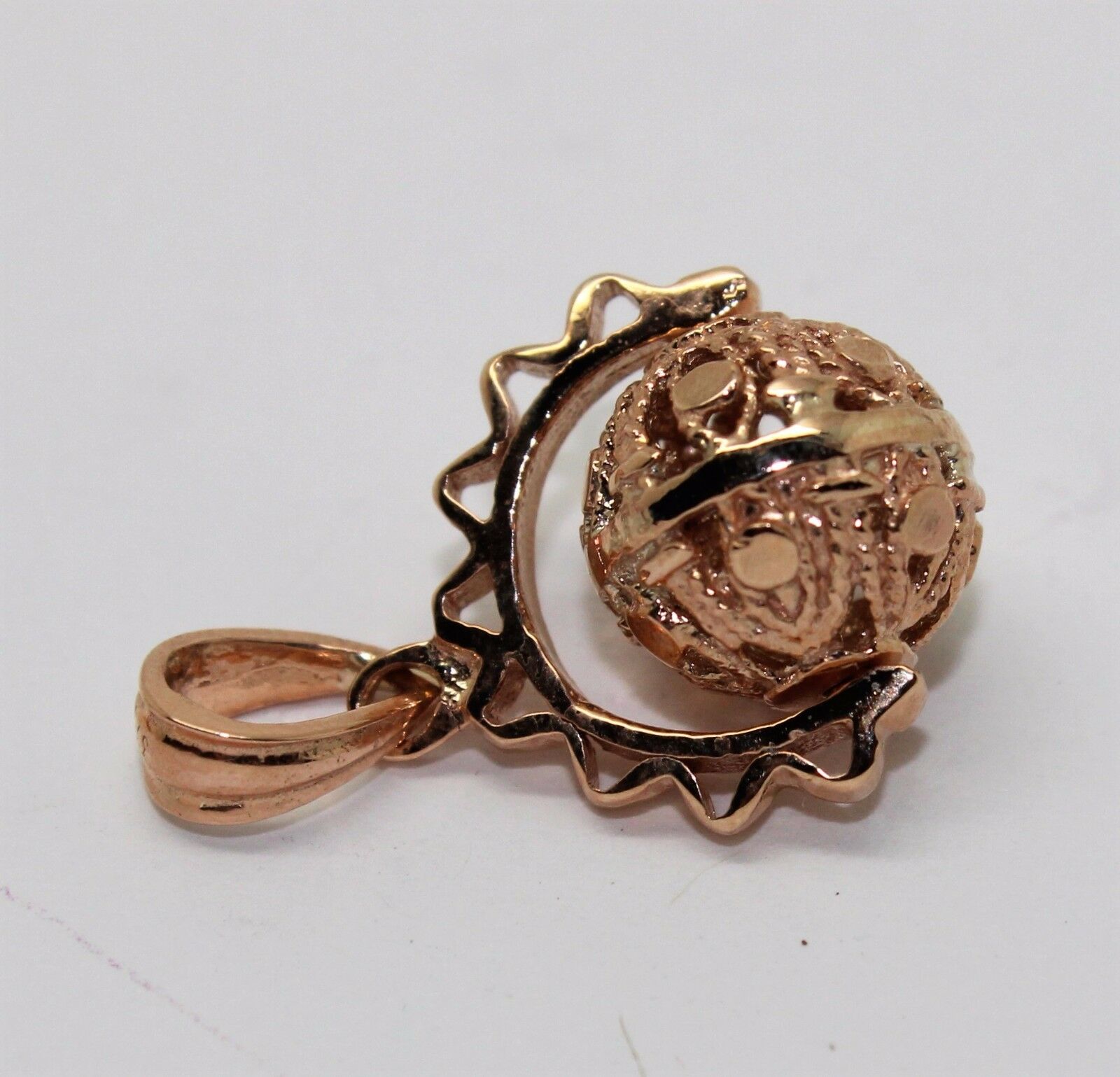 Genuine 9k 9ct Solid Yellow, Rose Or White Gold Filigree 10mm Ball Spinner Pendant