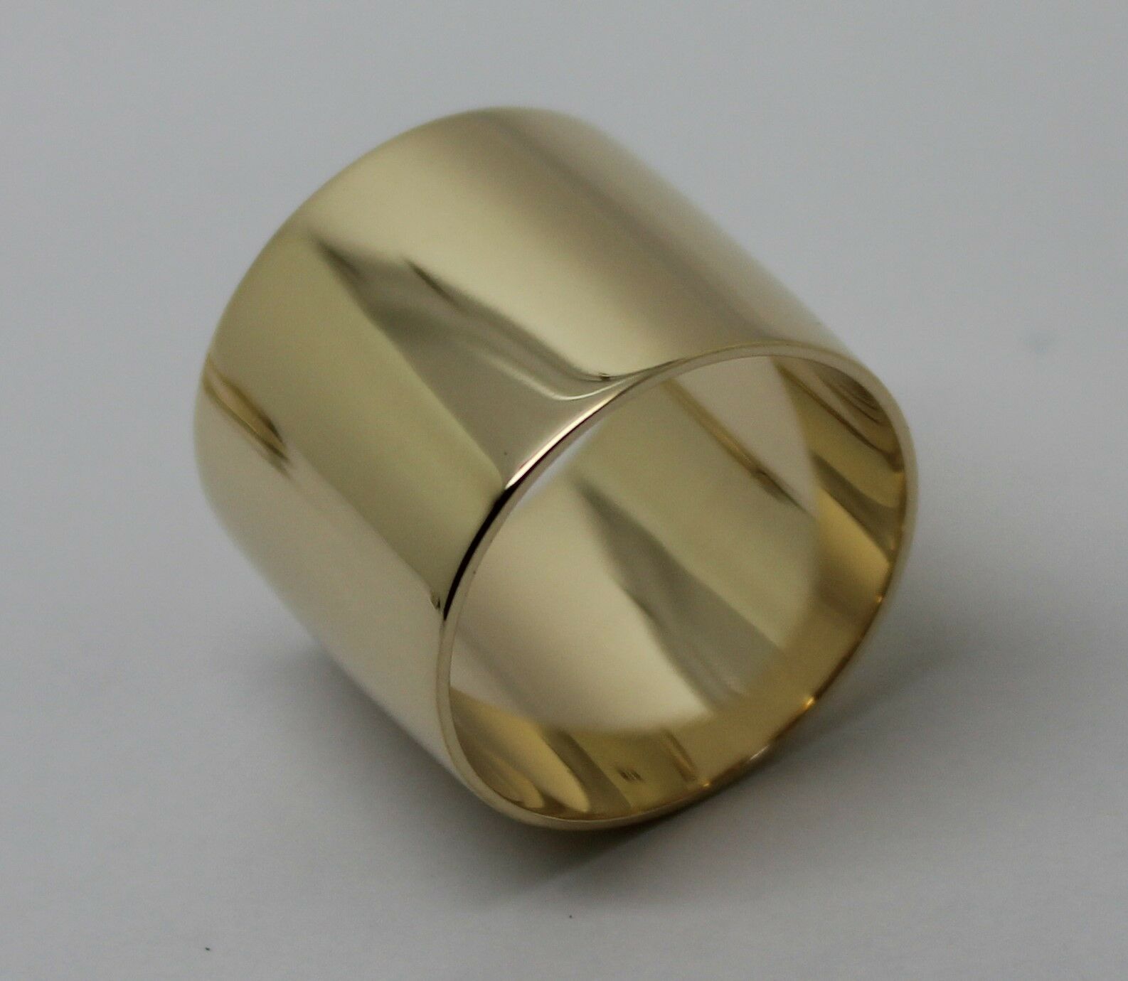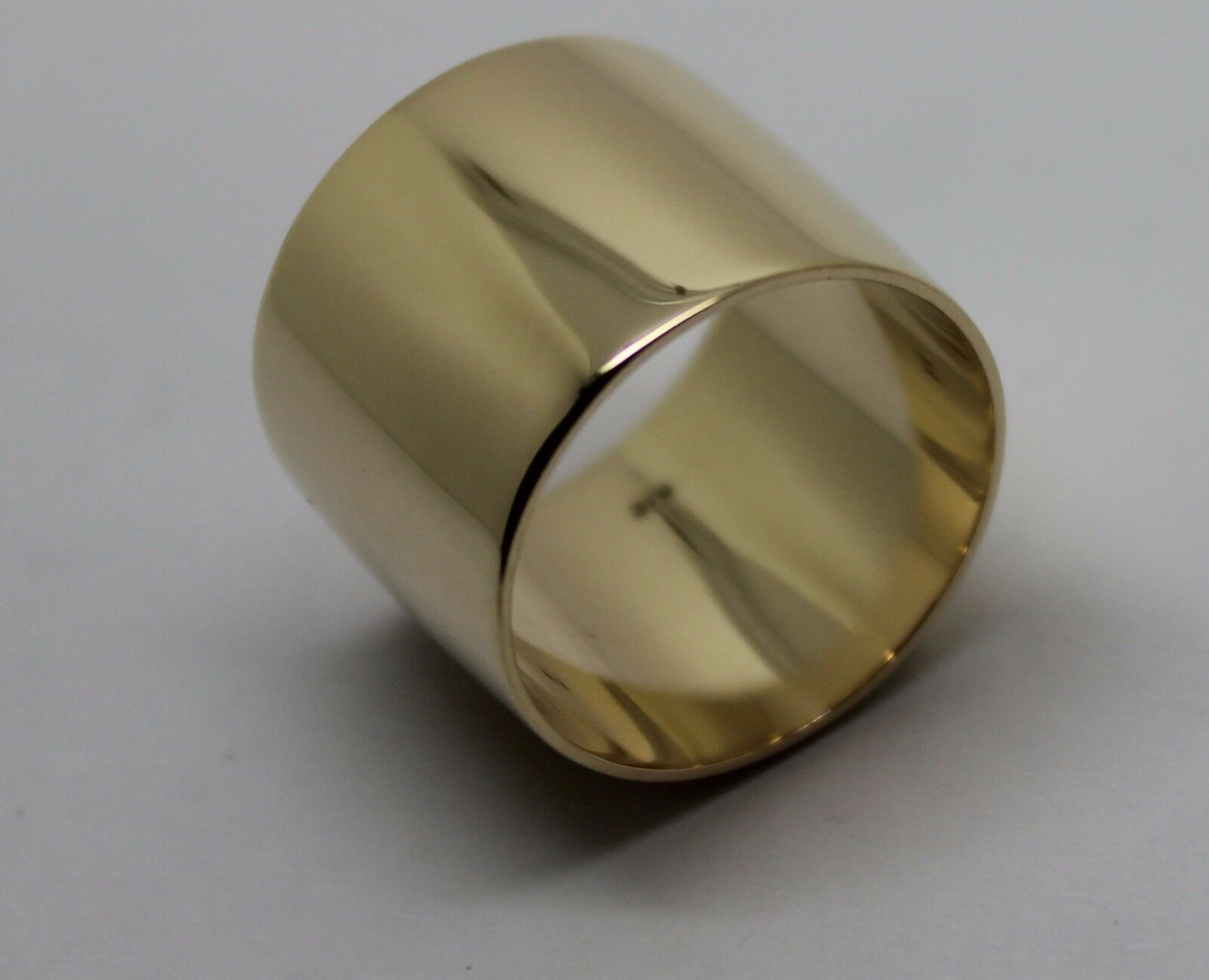 Size L 9ct Yellow, Rose or White Gold Solid Cigar 15mm Extra Wide Band Ring