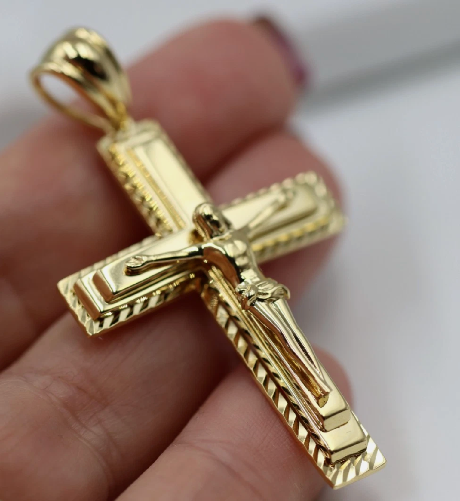 Genuine 18ct 18k 750 Yellow Gold Large Crucifix Cross Pendant