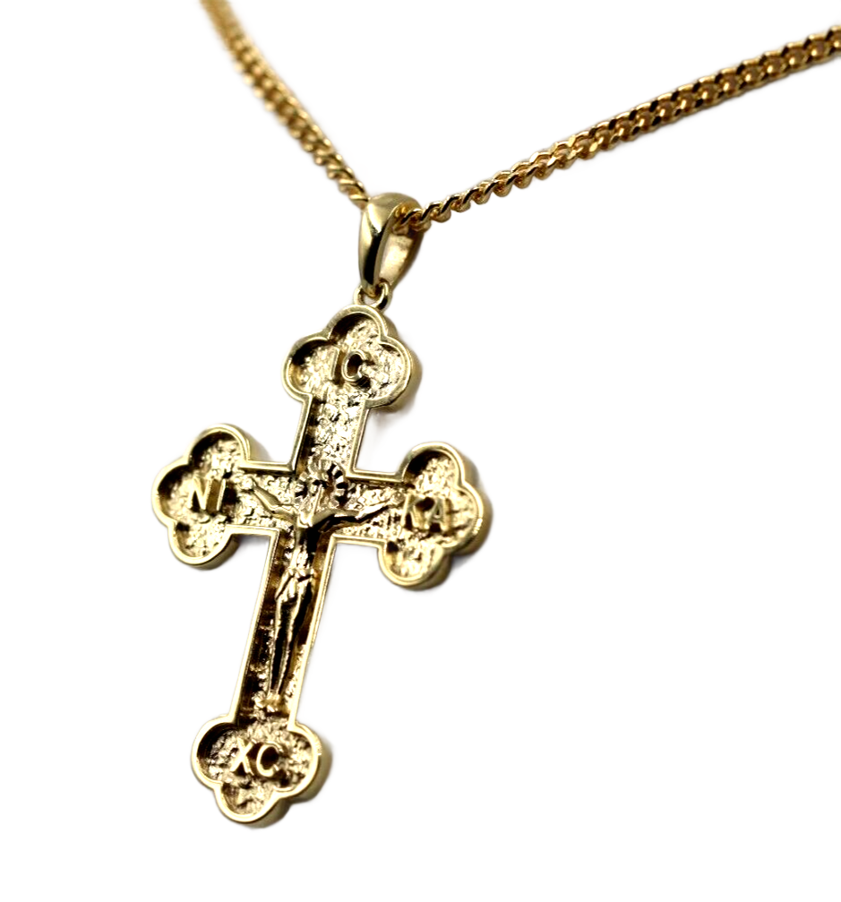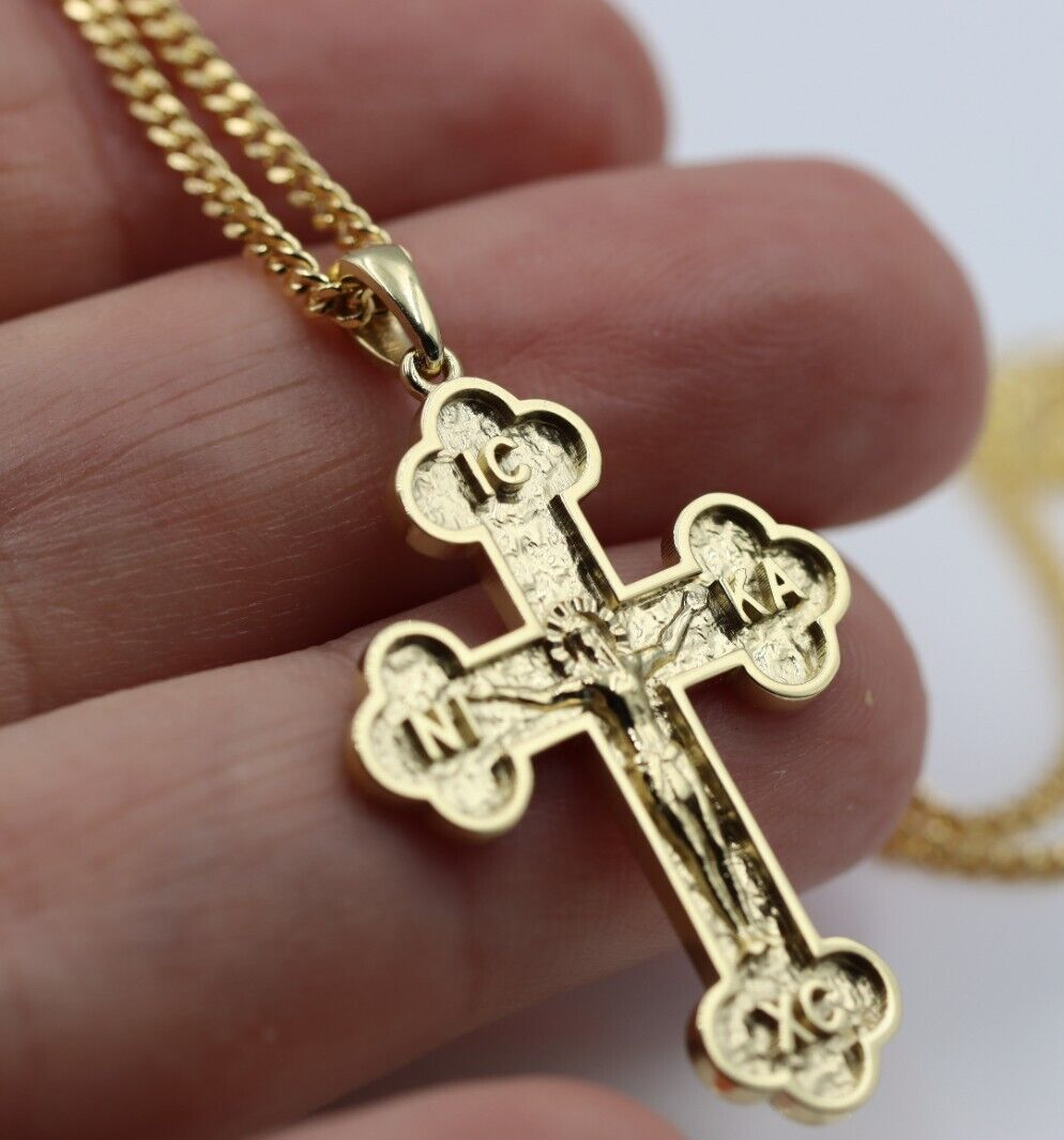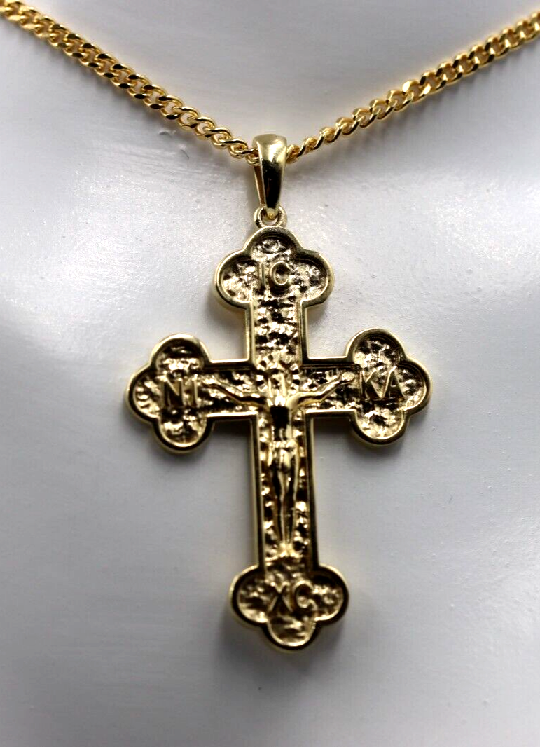 Genuine 18ct 18kt 750 Yellow Gold Byzantine Cross + 55cm Necklace