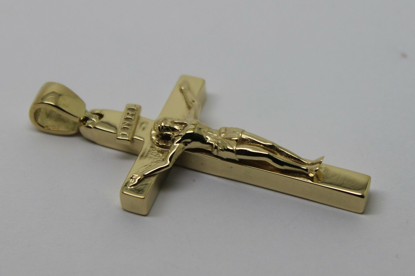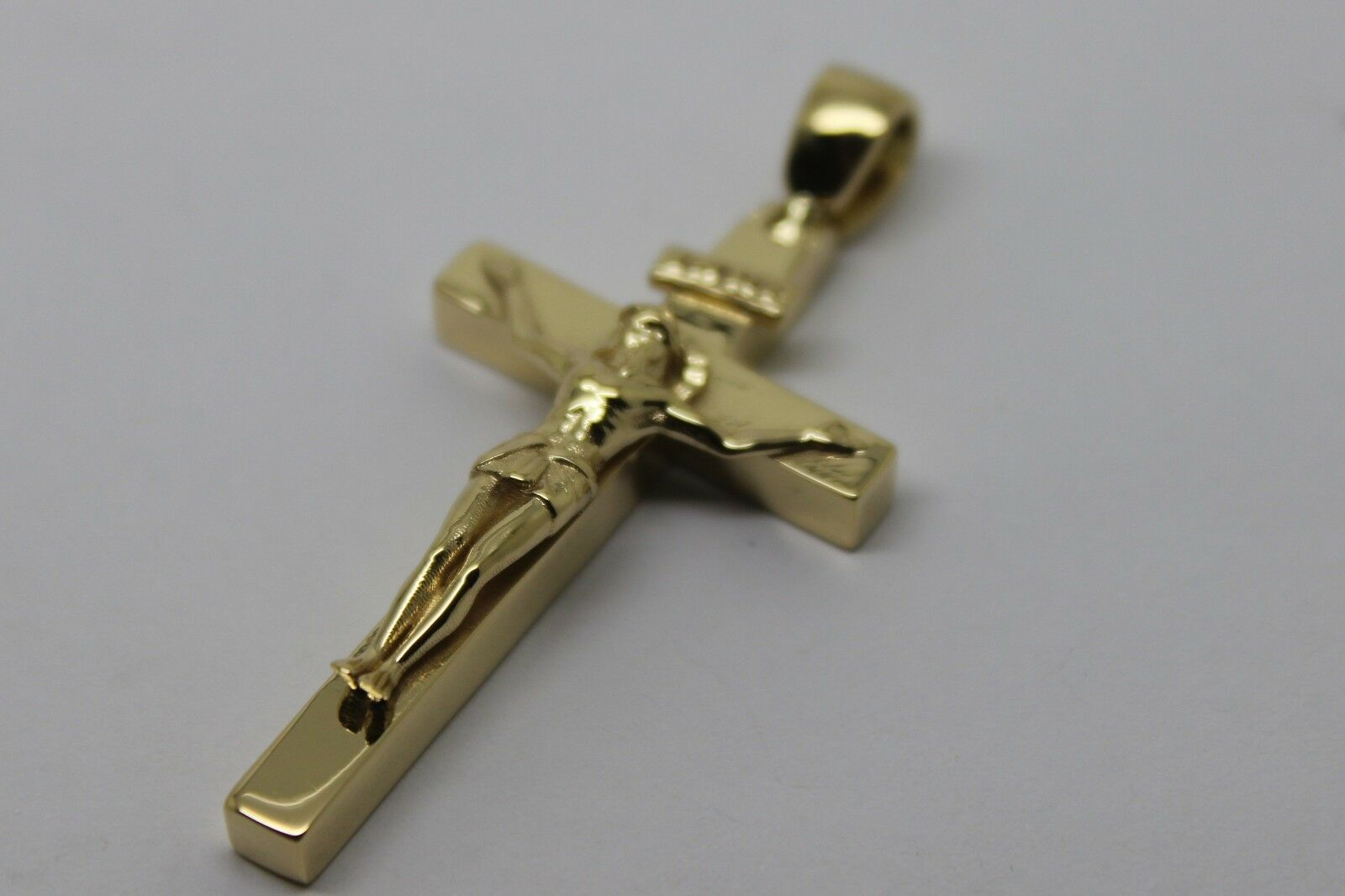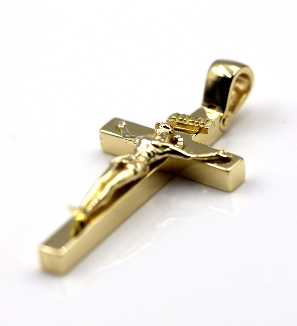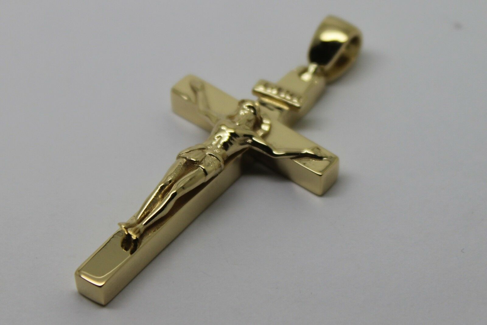 Genuine 18ct Gold Solid Heavy Crucifix Cross Pendant offers classic style and quality. Crafted from 18ct Yellow, Rose, or White Gold, this pendant is guaranteed to last and made to the highest standard.