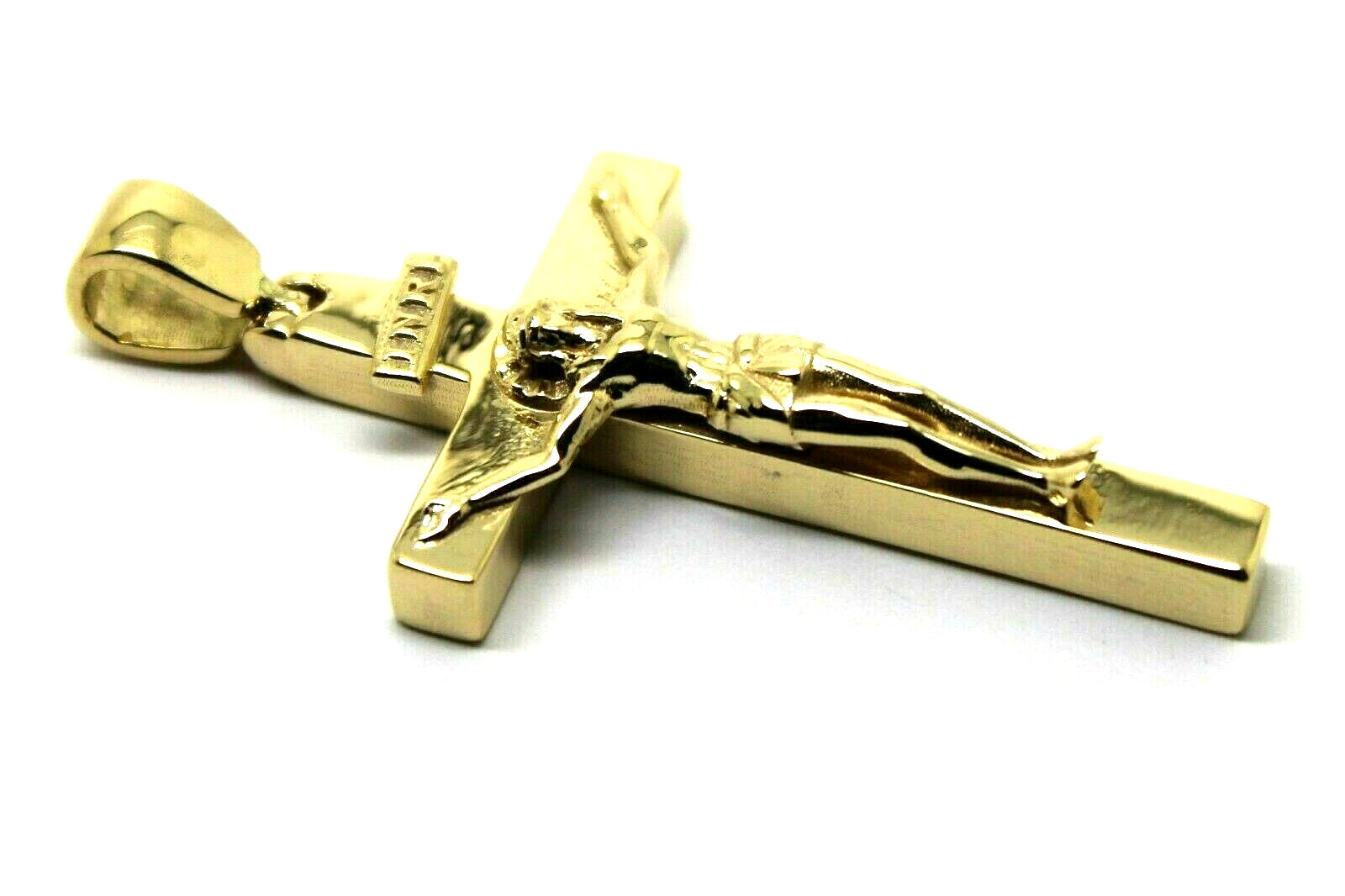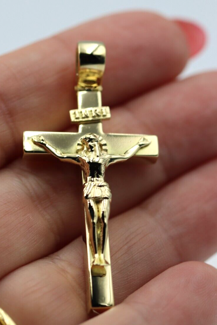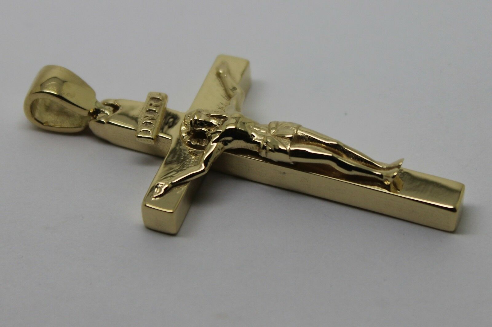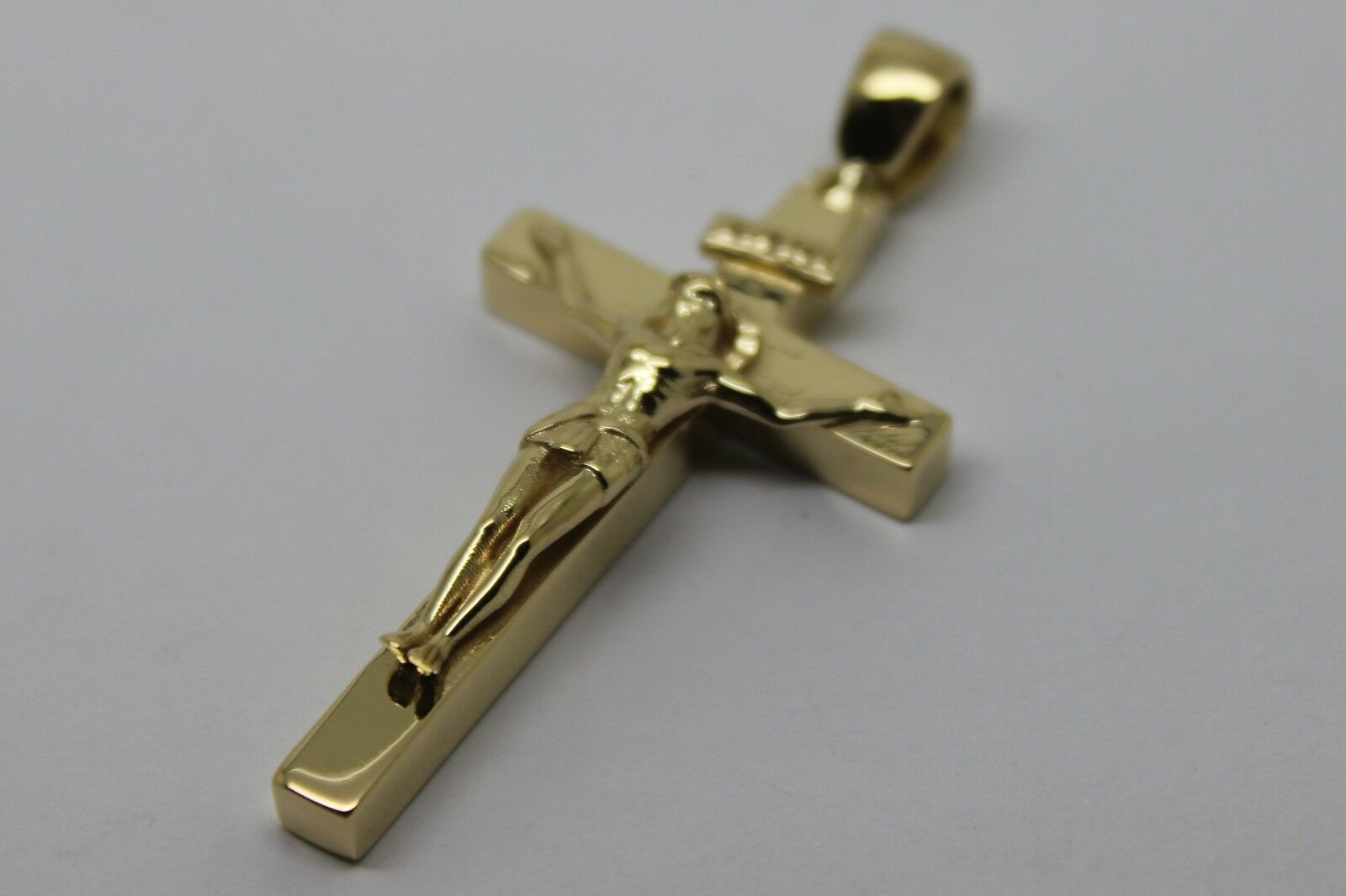 Genuine 18ct Gold Solid Heavy Crucifix Cross Pendant offers classic style and quality. Crafted from 18ct Yellow, Rose, or White Gold, this pendant is guaranteed to last and made to the highest standard.