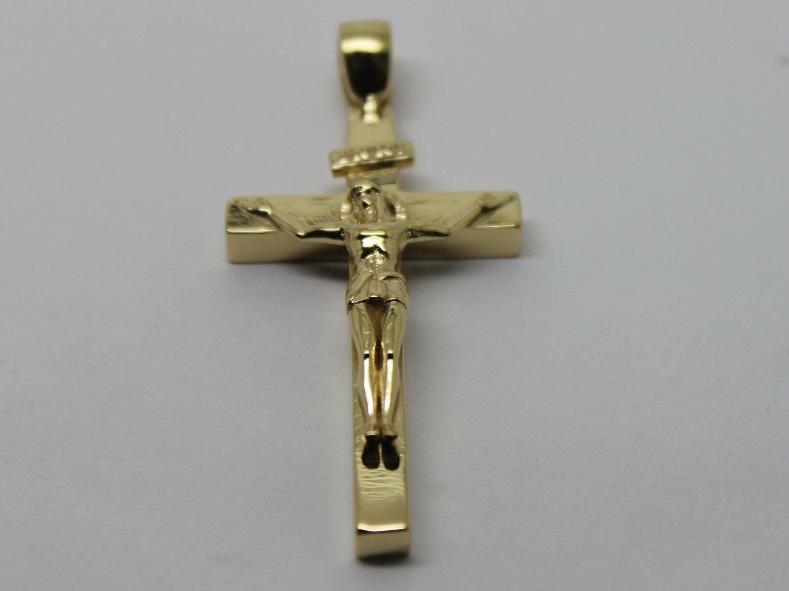 Cross is solid gold all the way through 4.2cm x 2.4cm (size of cross) 6mm bale |