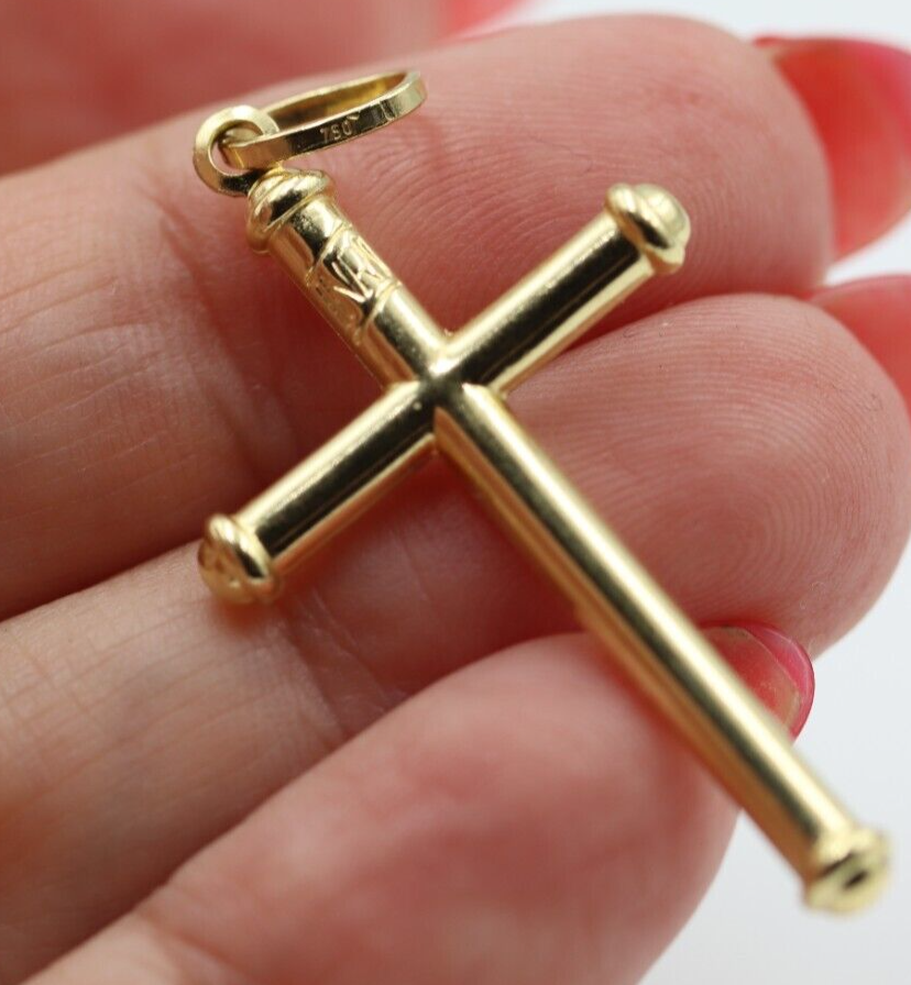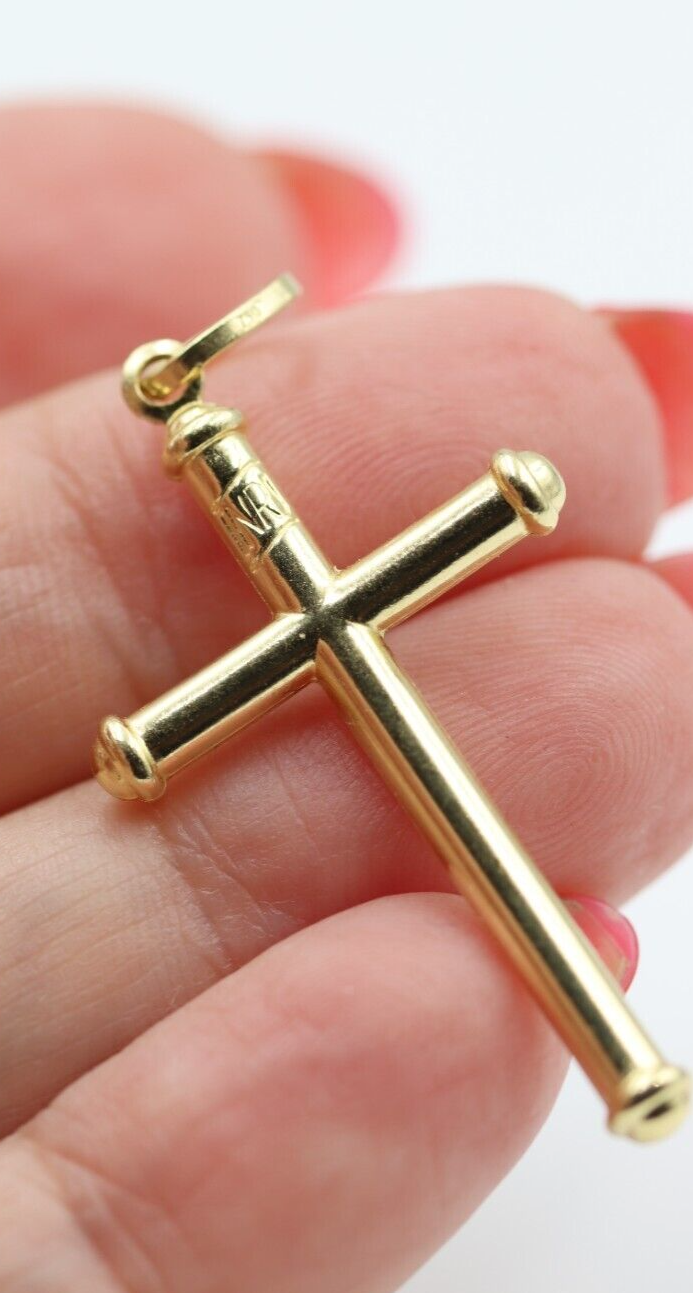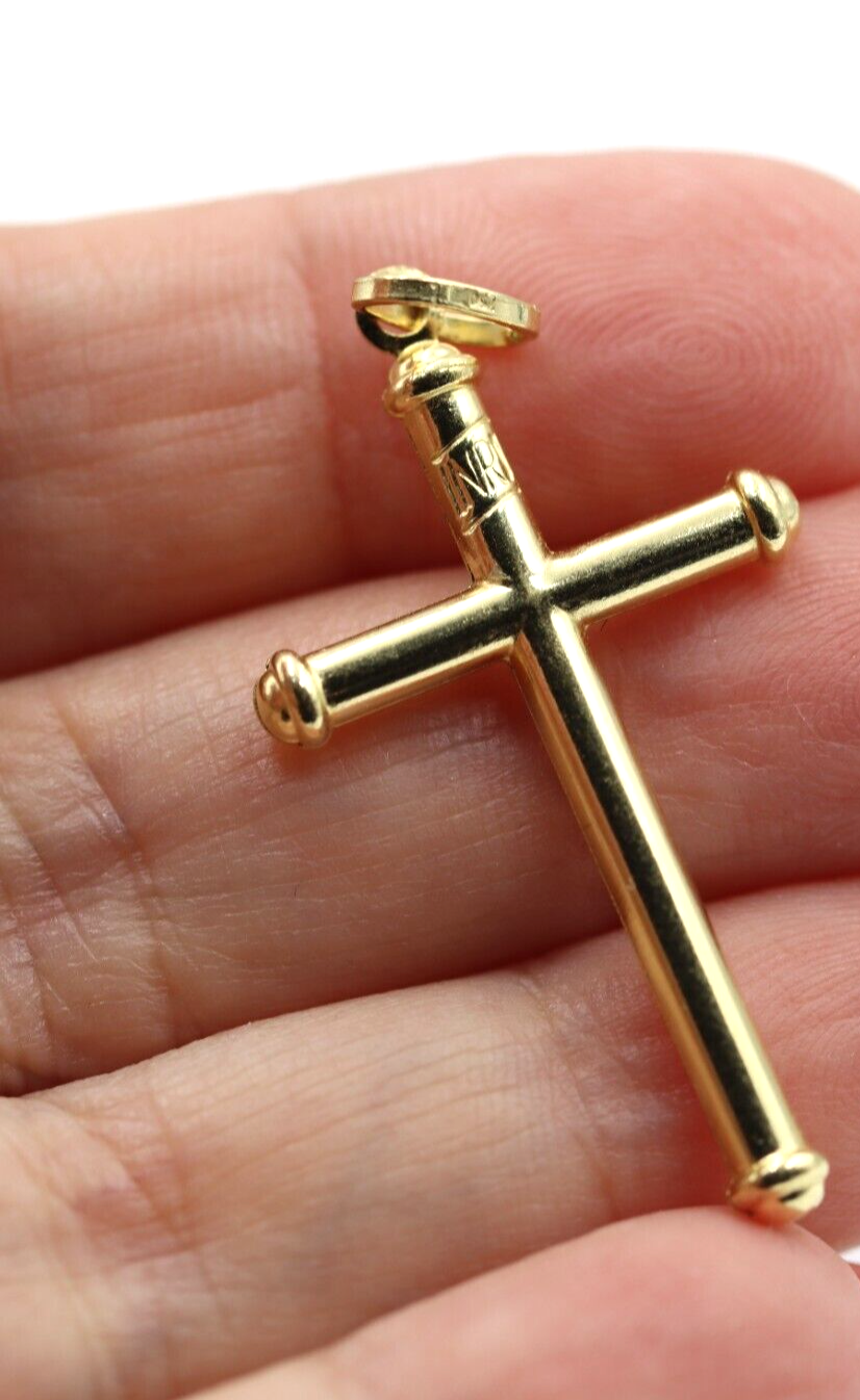 Genuine 18ct 18kt 750 Yellow Gold Hollow Cross Pendant