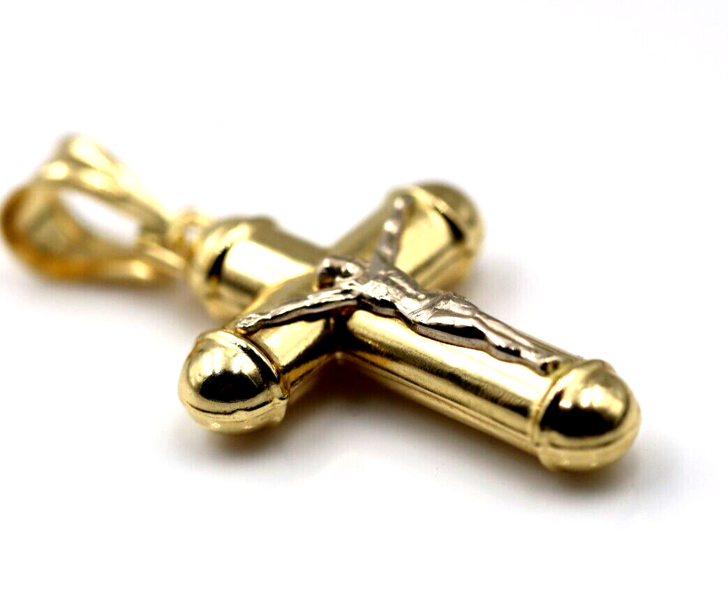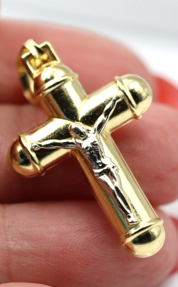 Genuine 18ct 18kt 750 Yellow/White Gold Hollow Crucifix Cross Pendant-Free Post
