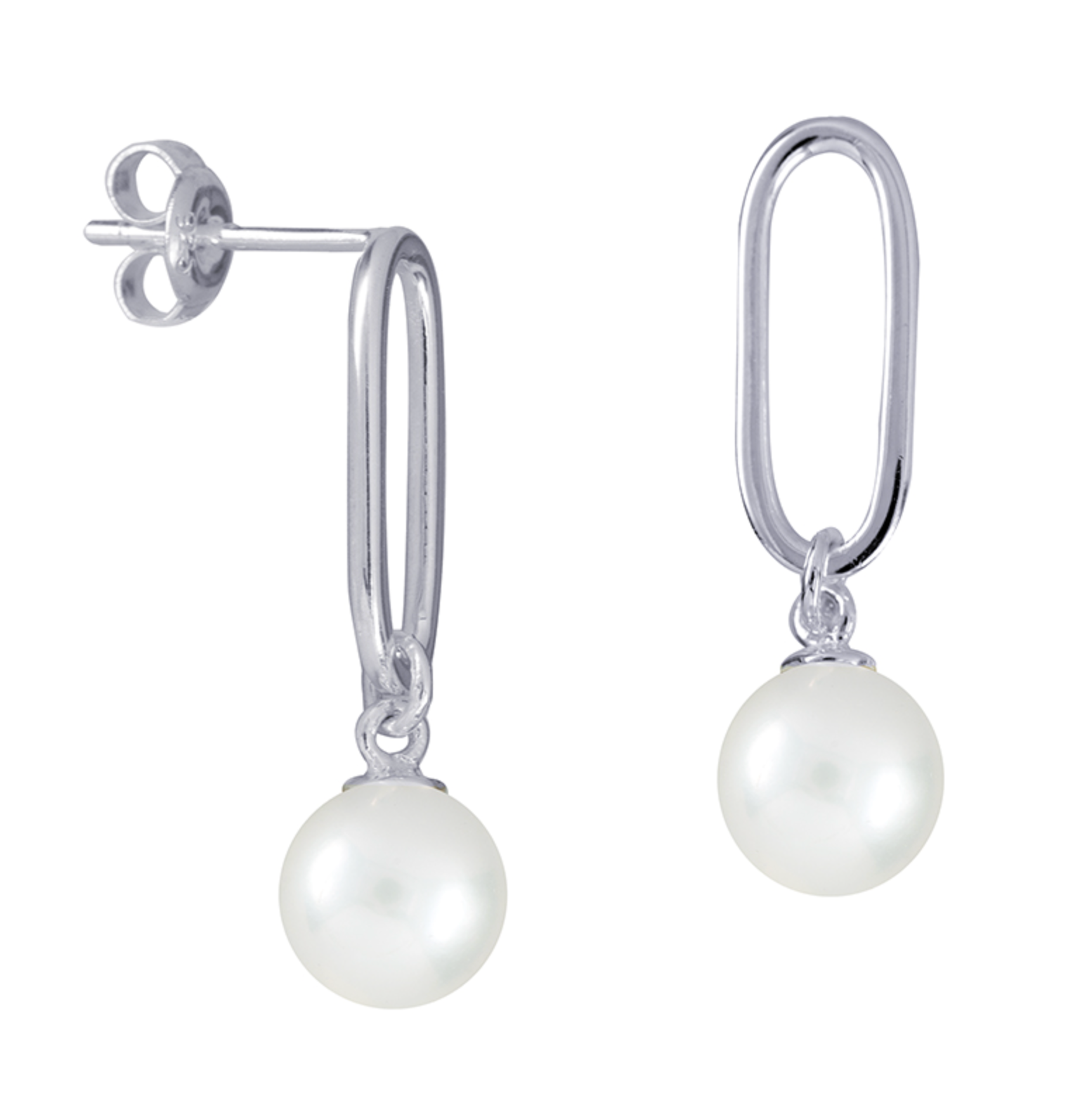Genuine Sterling Silver 925 Paperclip Stud with 8mm Freshwater Cultured Pearl Drop Earrings