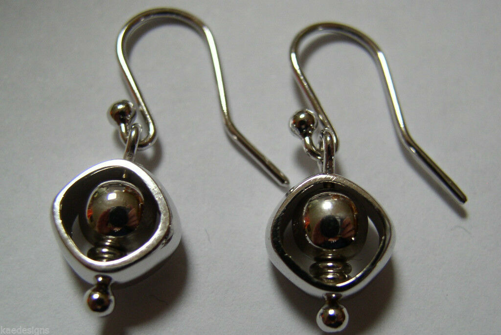 Genuine 9ct 9kt White Gold Belcher Ball Drop Earrings